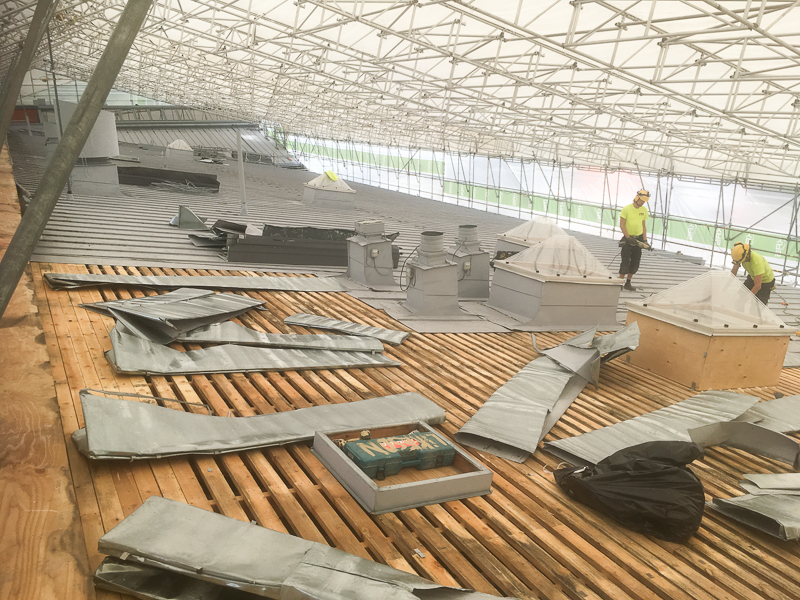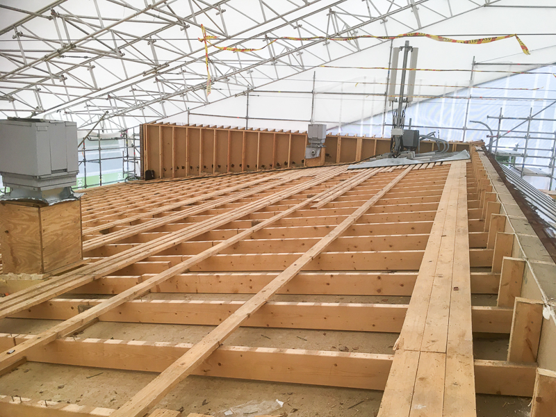 Työvaiheita museon olkikaton toteutuksesta.