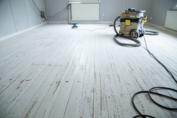 Kohteessa oli hyvin vanha lattia, joka oli päässyt huonoon kuntoon. Laudat olivat kuperia, mutta lattian luonne haluttiin säilyttää. Hyvä maalipinta helpottaa lattian puhtaanapitoa!